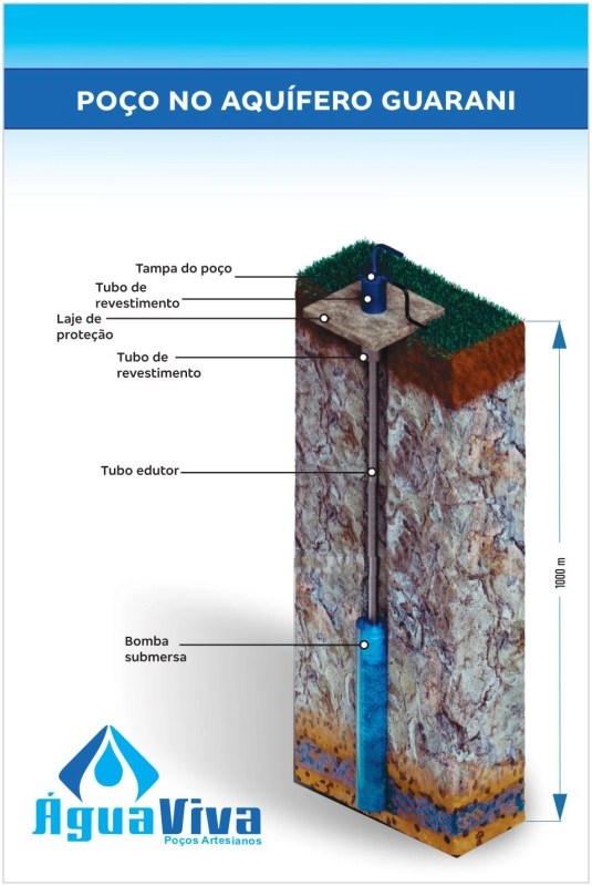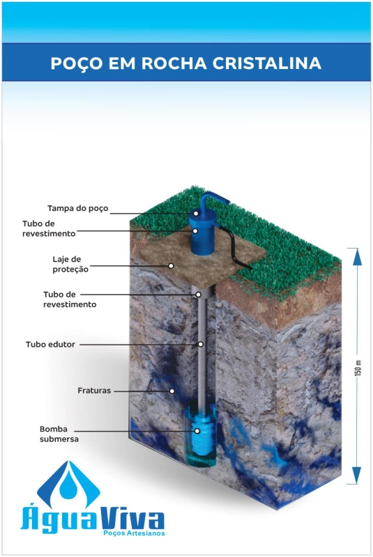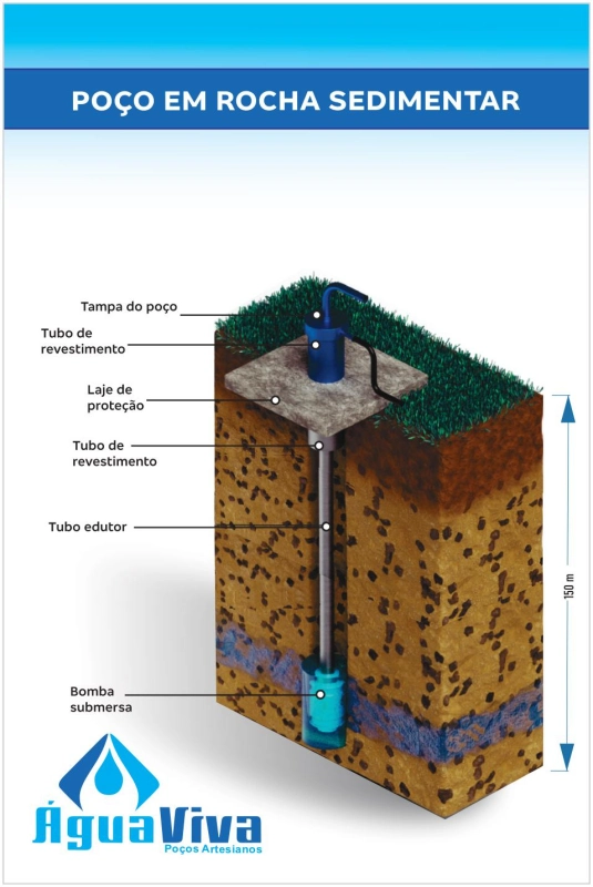 A perfuração de poços tubulares profundos são nosso meio para acessar aquíferos subterrâneos. A água, captada destas reservas, é retirada, com o auxílio de bombas submersas, e, em sua maioria, é mais pura e com maior porcentagem de sais minerais. Essa característica, no entanto, só é possível devido à profundidade que esses poços são perfurados.